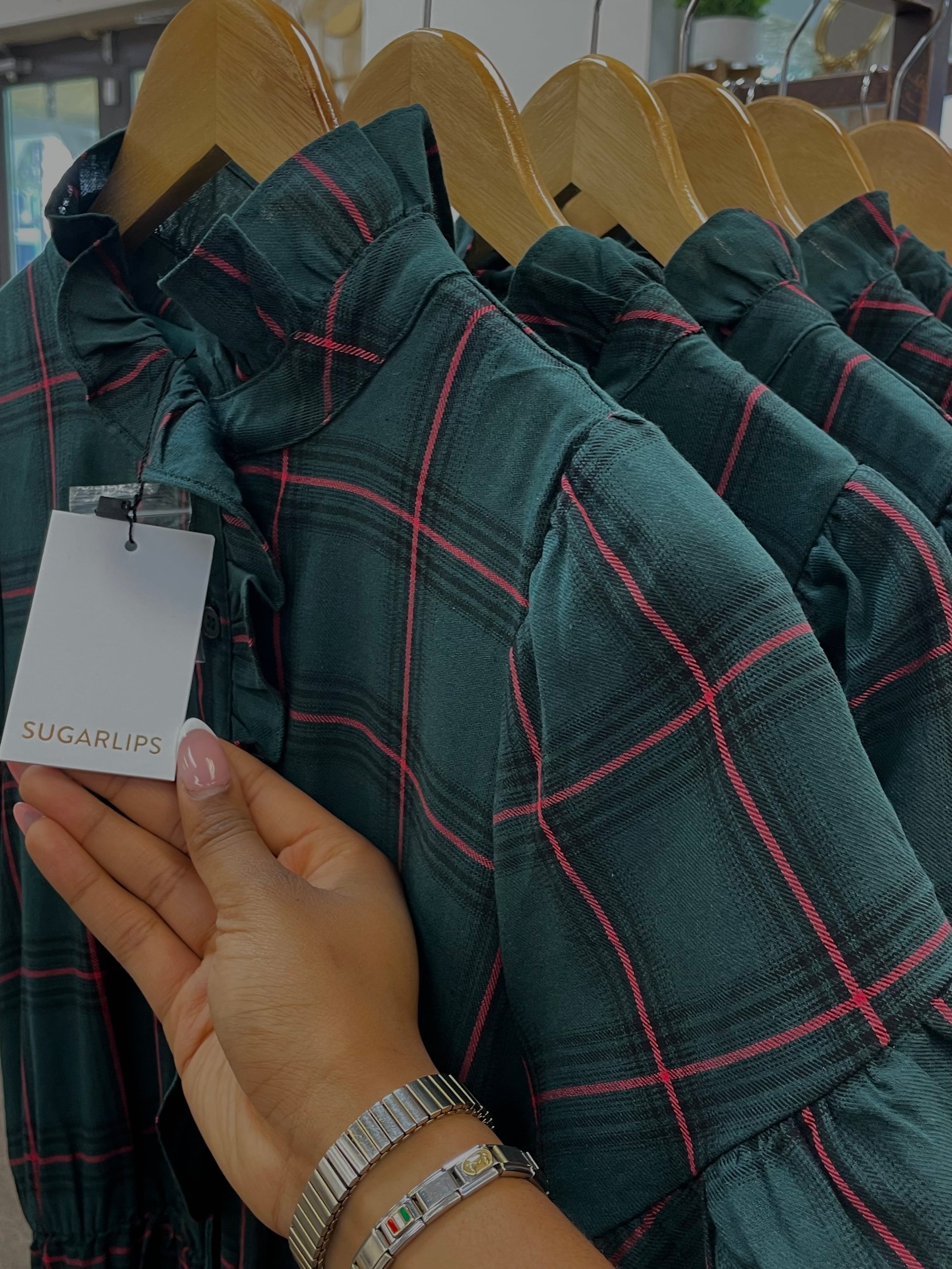 Brook Plaid Cottonwood Ruffle Button Down Mini Dress