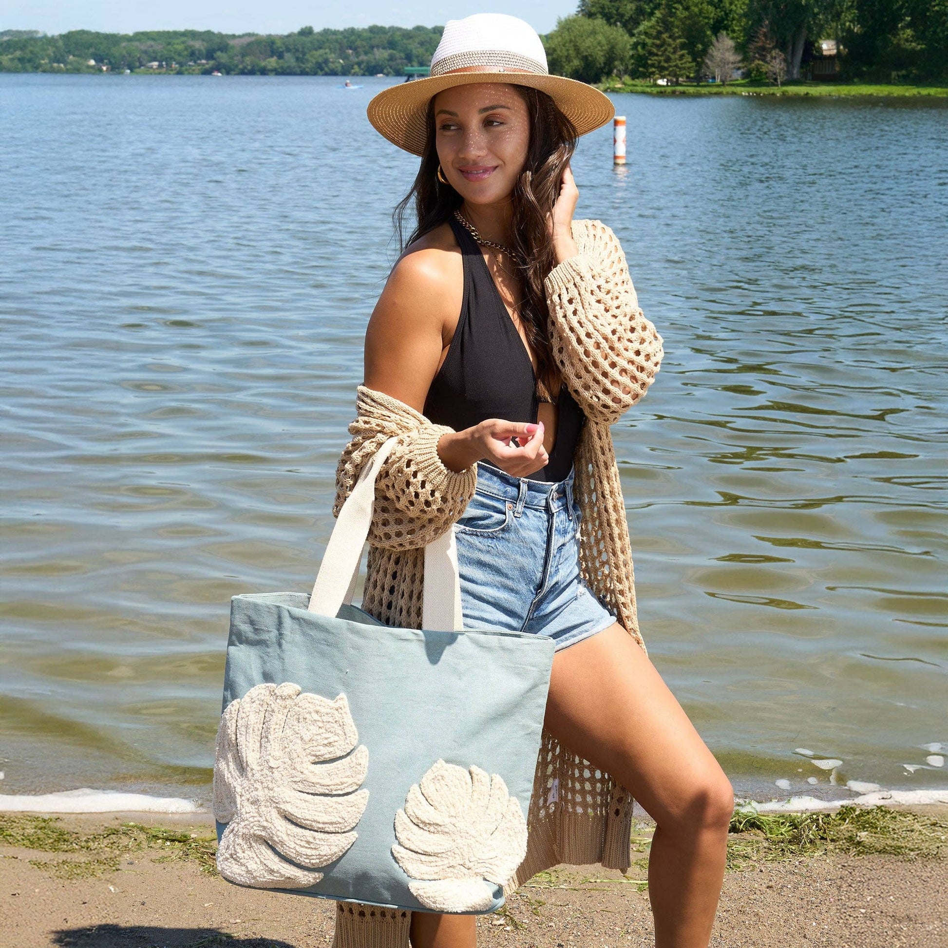 Set sail into a sea of style with the Fiji Water Resistant Beach Tote Bag. Adorned with playful embroidered Monstera leaf detailing, this tote captures the carefree spirit of sun-soaked days by the water. Its comfortable matching straps and water-resistant cotton material make it as practical as it is charming, ready for any adventure that comes your way. Inside, three thoughtfully designed pockets—two for your phone and one secure zipper pocket—keep your essentials organized and within reach. Whether you're strolling along the shore or exploring hidden coves, the Fiji Tote is your perfect companion for every beachside romance.