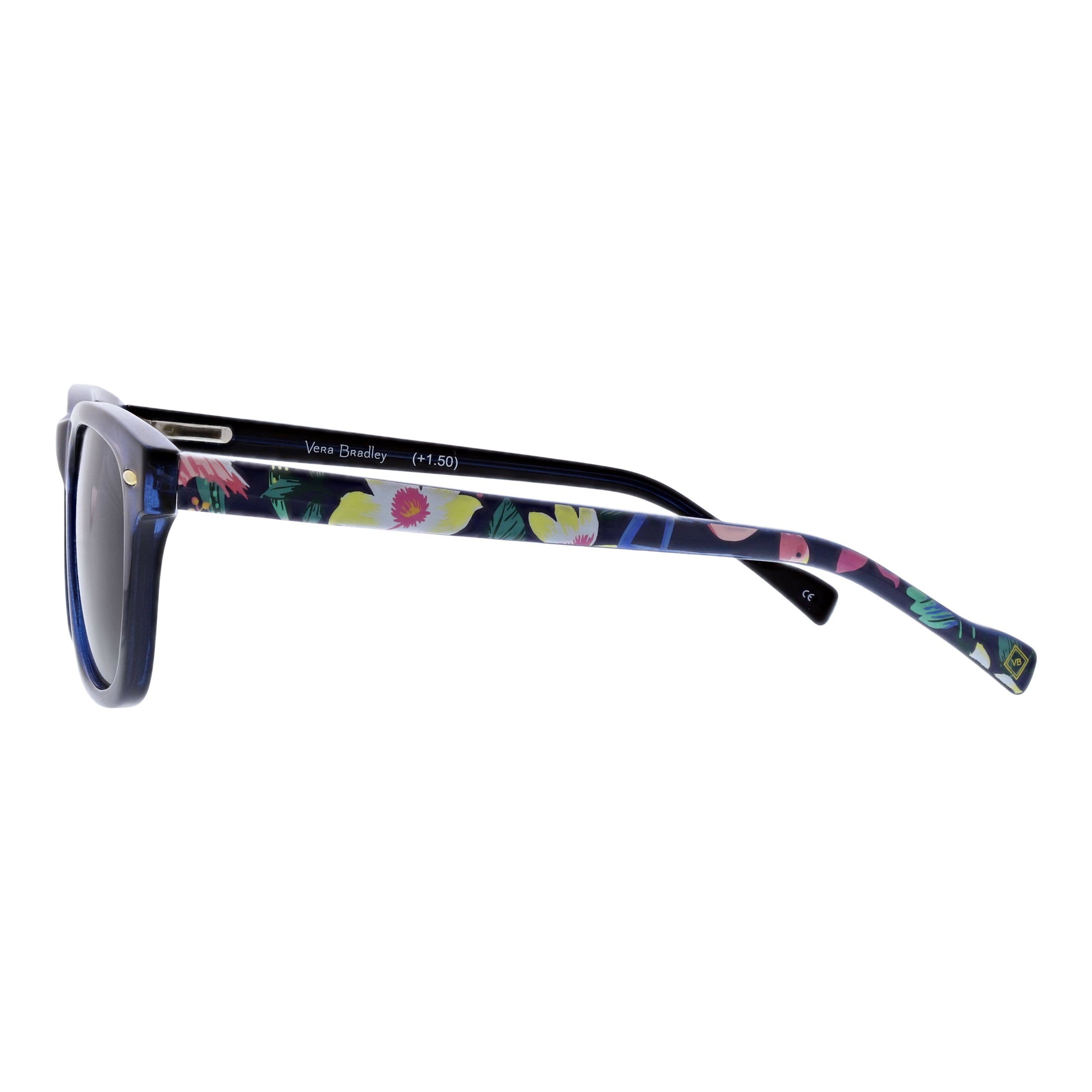Watch out as Flynn bursts onto the scene! It's a classic rectangular, retro-inspired reading sunglass from Vera Bradley that blends timeless style with a contemporary twist. Available in Paradise Coral, featuring a tortoise to lavender gradient shift and Flamingo Garden, with a deep indigo acetate, each frame is adorned with vintage decor pieces on the eyerim for a modern feel. With its versatile design and poweful bifocal lenses, Flynn is your go-to accessory for any occasion, adding a touch of classic elegance to your look.