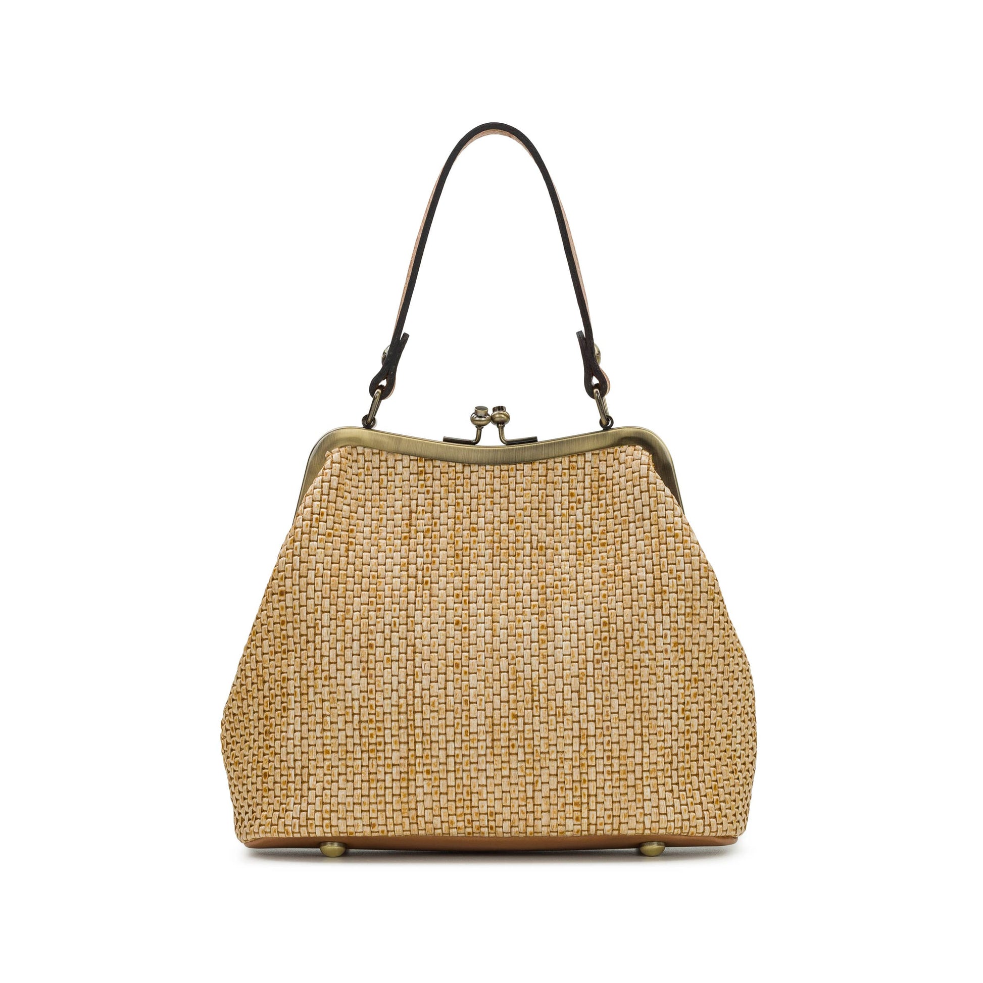 An elegant, keep-it-forever bag, the Laureana Frame Satchel effortlessly blends timeless sophistication with modern charm. Crafted in Patricia's luxurious Burnished Woven, which is a luxurious raffia made in Italy, this satchel makes a bold style statement for any occasion. Whether carried by its elegant handle or worn with the optional chain strap, it offers versatility to suit your every need. Compact yet captivating, the Laureana is the perfect companion for life’s special moments. Treat yourself to this timeless beauty. You’ll never want to let it go. The Laureana comes with a gorgeous, detachable Spring Multi scarf.
