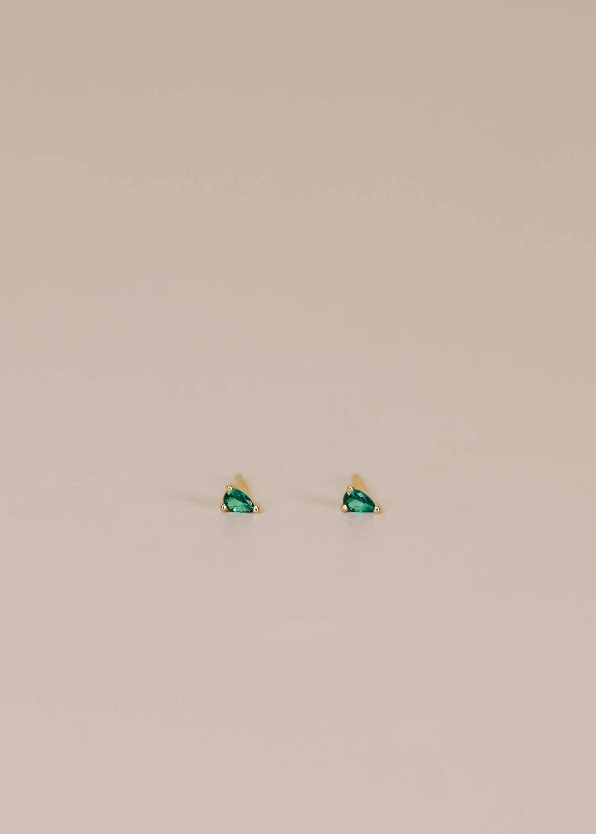 The teardrop earring showcases a pear-shaped CZ stone that is set in a prong.